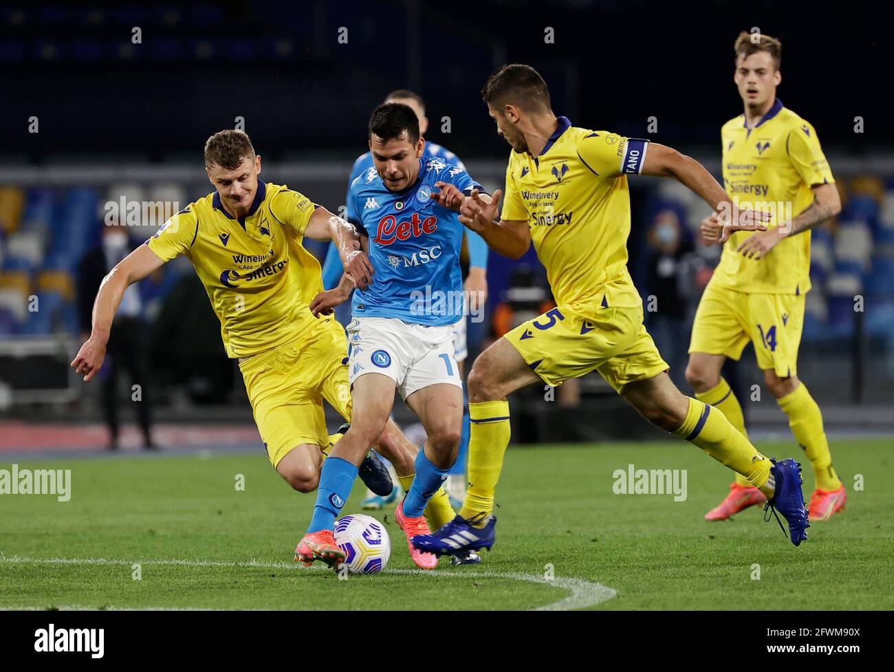 Soccer Football Serie A Napoli V Hellas Verona Stadio Diego Armando Maradona Naples Italy May 23 2021 Napoli S Hirving Lozano In Action With Hellas Verona S Pawel Dawidowicz And