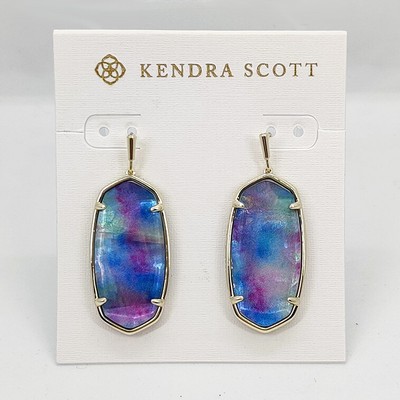 New Kendra Scott Faceted Elle Drop Earrings In Teal Tie Dye Illusion Gold Ebay